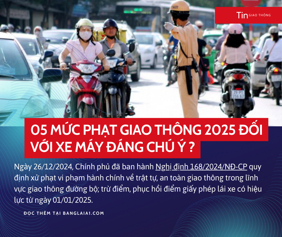 Dưới đây là 05 mức phạt giao thông 2025 đối với xe máy đáng chú ý: