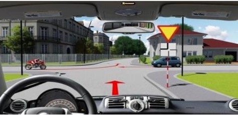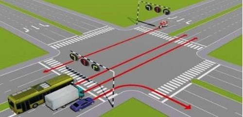 #22. Các xe đi theo hướng mũi tên, xe nào vi phạm quy tắc giao thông?