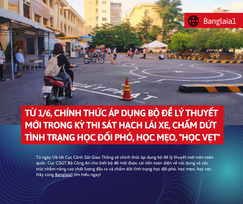 Từ ngày 1/6, Cục Cảnh sát giao thông sẽ áp dụng bộ đề thi lý thuyết mới trên toàn quốc. Bộ Công An cho biết, bộ đề mới được cải tiến toàn diện về nội dung và cấu trúc. Mục tiêu then chốt nâng cao chất lượng sát hạch, chấm dứt tình trạng học đối phó hay học mẹo, học vẹt. Hãy cùng Banglaia1 tìm hiểu ngay!